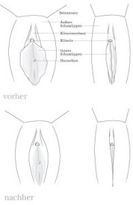 • Die Verkleinerung der inneren Schamlippen hat nichts mit der Beschneidung der Frau bzw. der Entfernung der Klitoris zu tun. Eingriffe dieser Art sind von jedem seriösen Mediziner und auch von jedem Menschen auf das Schärfste zu verurteilen.